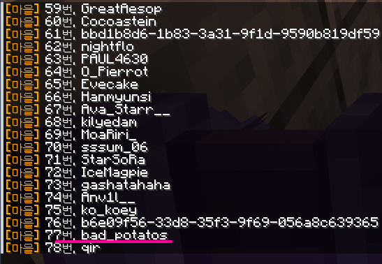 | 특징 | 주민상점, 동물농장, 공용창고. 닭공장, 경험치팜, 거미팜 |