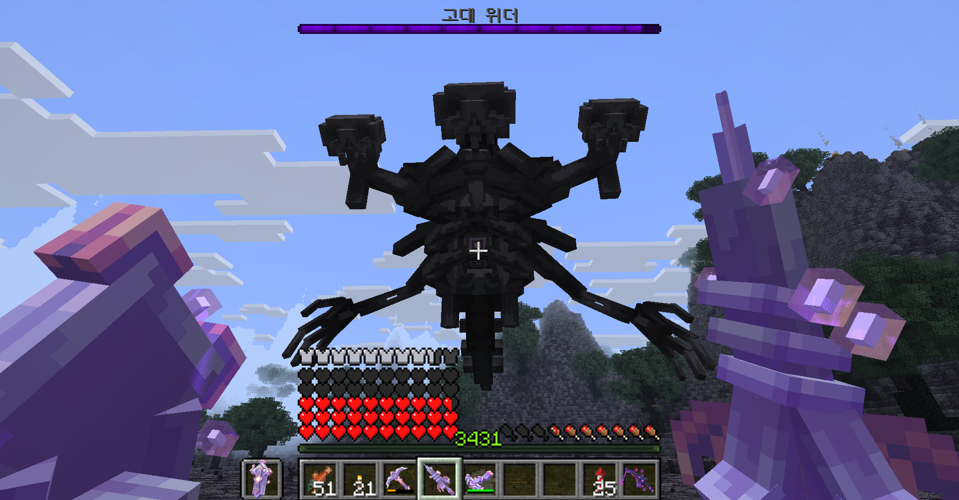 - 이동 속도가 높거나 겉날개 + 폭죽 조합을 이용하거나 백스탭을 쓰거나 엔더 진주를 던지거나 탈출할 방법은 많습니다.